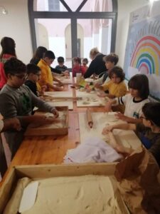 conditi con profumi, gesti di manine che stendono la pasta, un guardarsi negli occhi, stare stretti stretti vicino al tavoliere a tagliare cucoli con mamme e nonne che si raccontano e sognano per i bimbi un futuro di felicità.